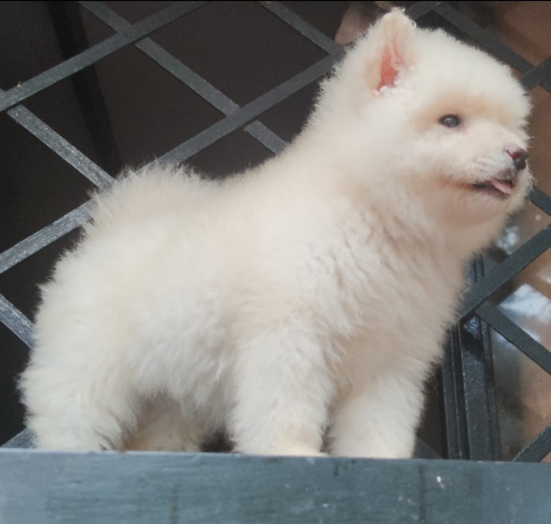 Pelo: Doble capa, densa, abundante y de color blanco puro (requiere cepillado frecuente).