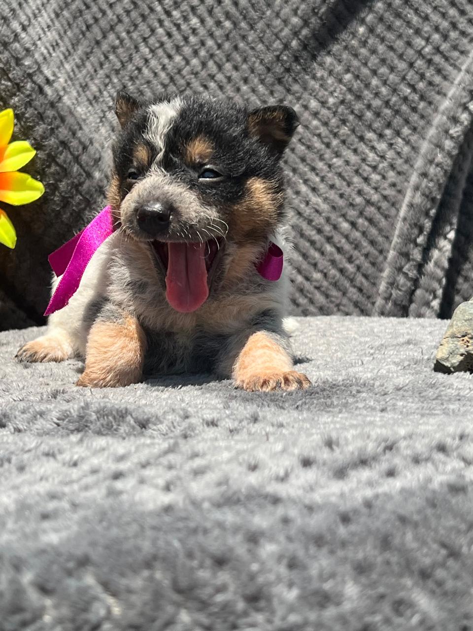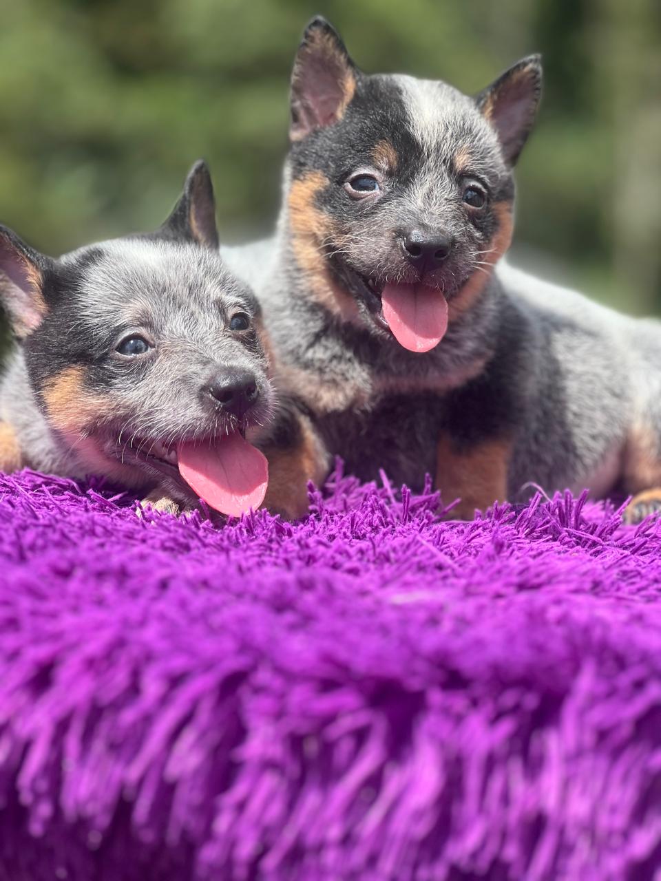 Color: Azul moteado (Blue Heeler) o rojo moteado (Red Heeler).