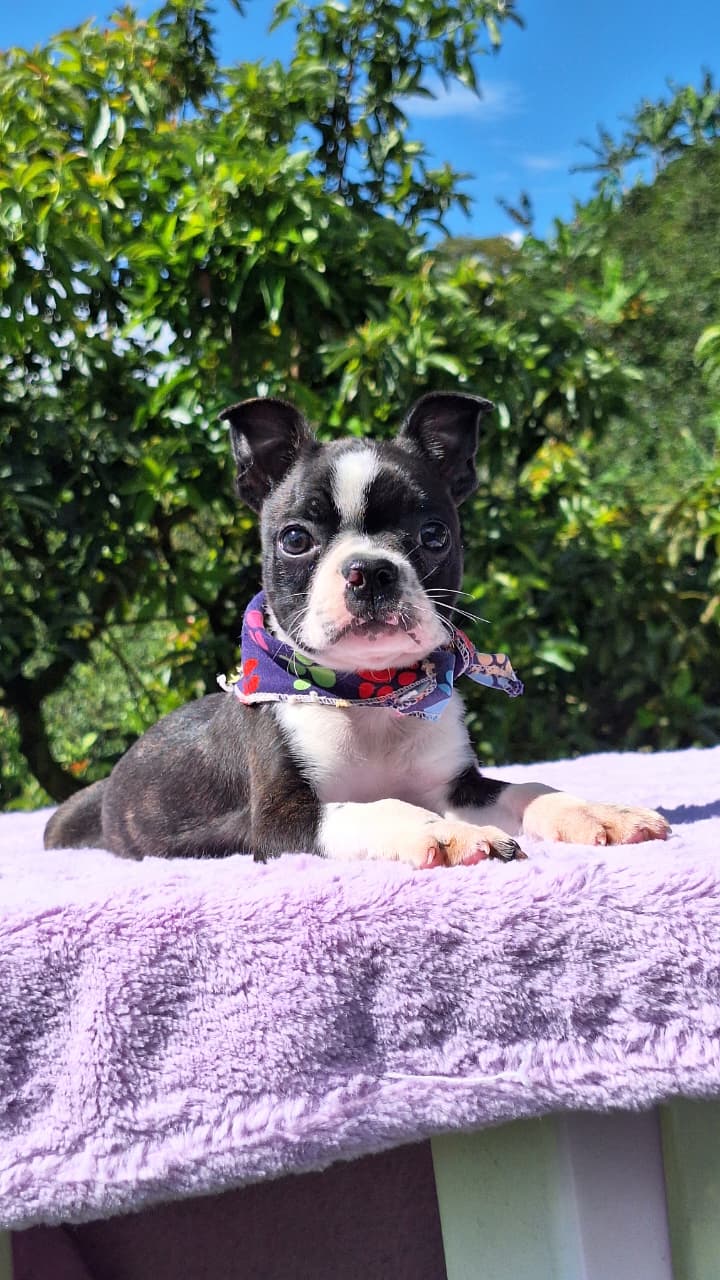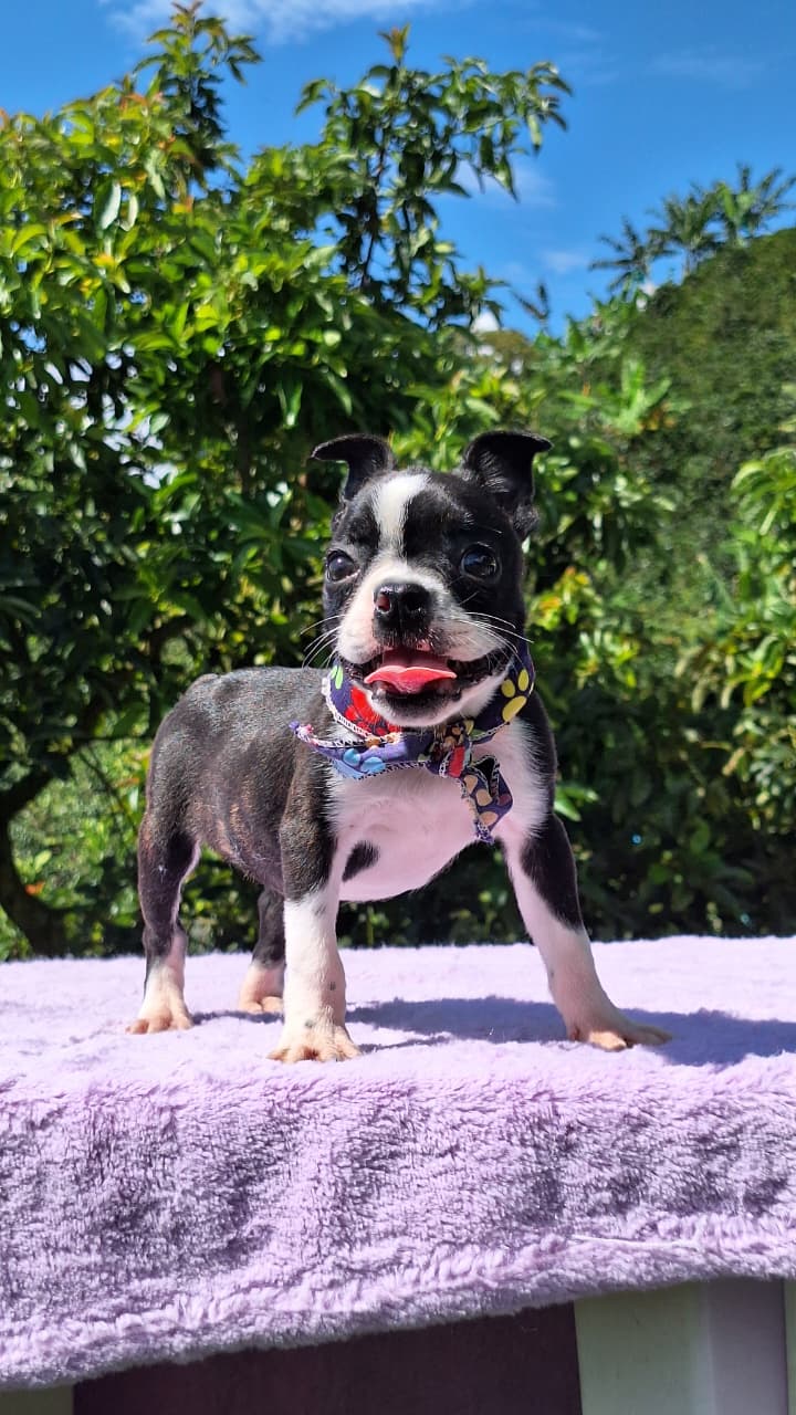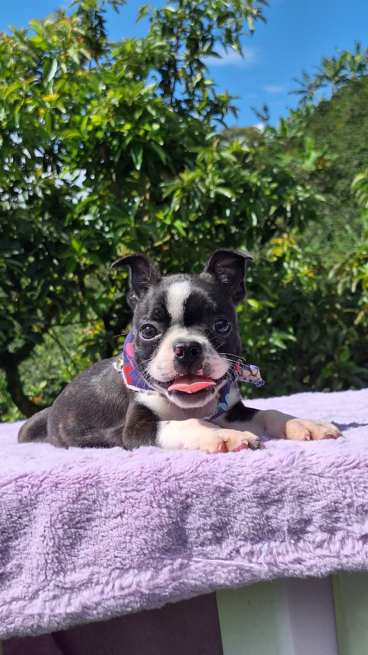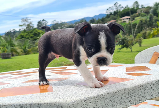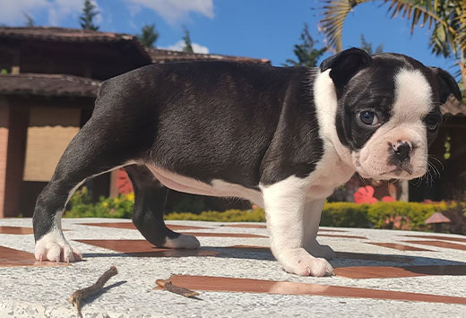 Descubre el Boston Terrier, conocido mundialmente como el “Caballero Americano” por su impecable pelaje tipo esmoquin y modales encantadores. En Mascooriente, seleccionamos ejemplares que destacan por su estructura compacta, su hocico corto y sus ojos expresivos llenos de inteligencia. Es un perro sumamente afectuoso, equilibrado y fácil de convivir, ideal para familias que buscan un compañero elegante que se adapta perfectamente tanto al juego como al descanso en el hogar. Al elegirnos, llevas la tranquilidad de 18 años de trayectoria y el respaldo legal absoluto de nuestro criadero profesional.